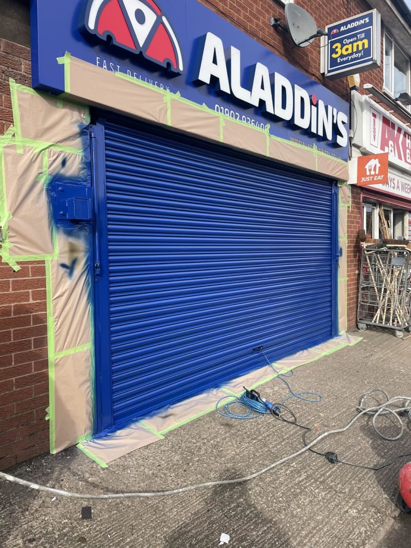 We do. Our team works across Birmingham, Solihull, Walsall, Dudley, West Bromwich and surrounding areas, spraying everything from single shopfronts to entire retail façades, shutters, and signage trims.